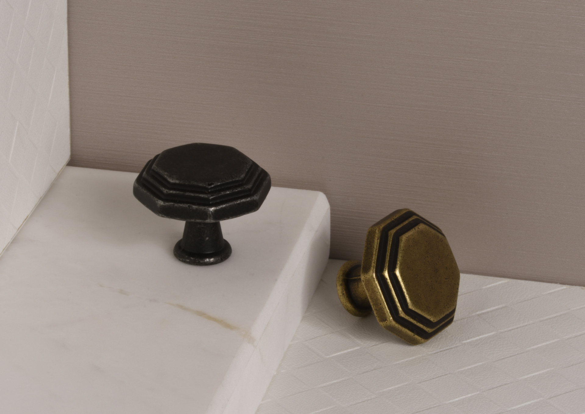Donker antiek brons combineert makkelijk met diverse kleuren fronten